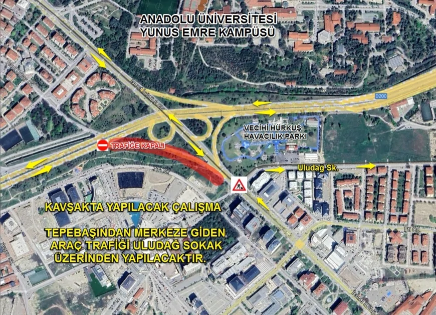 Kapanma süresince İsmet İnönü 1 Caddesi üzerinden gelen araçlar için yeni yönlendirmeler yapılacak. Eczacılık Fakültesi istikametinden gelen sürücüler Uludağ Sokak’a yönlendirilecek. Ayrıca çevreyolundan Vecihi Hürkuş kavşağına bağlantı yolu da çalışmalar süresince trafiğe kapalı olacak.