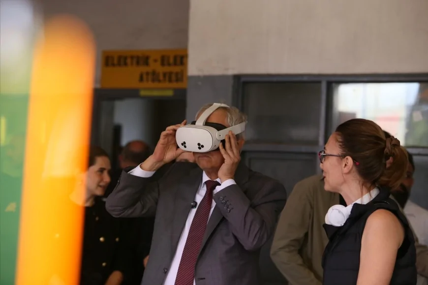 Başkan Kocagöz, “Artırılmış Arada” temalı “Kara Surlarının Dijital İzleri” adlı çalışmada VR gözlükleriyle dijital içerikleri deneyimledi. Ayrıca farklı boyutlardaki aynalarla oluşturulan LBRNT ve taş dizilimlerinden oluşan MUSKOVİT adlı deneysel işleri de gezerek sanatçılardan bilgi aldı.